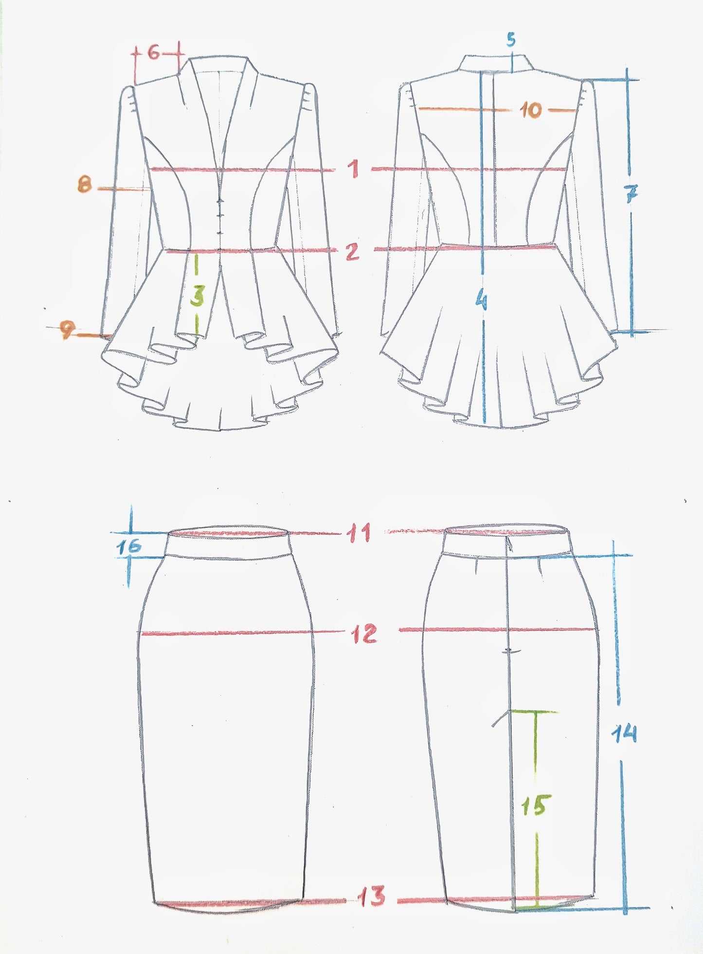 • Change the width at the hips of the skirt -2/+ 2 cm.